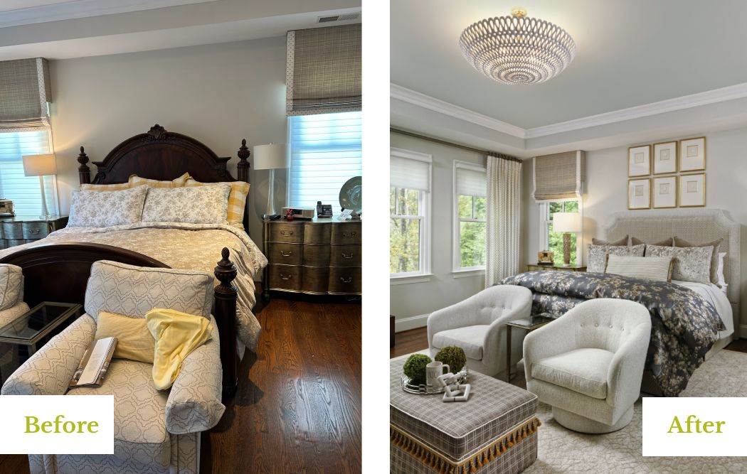 We often find that the last priority in a client’s home is where they sleep. But the bedroom is where one spends the most time, so it’s always a worthy investment. In this refresh, we touched everything from the floor to the ceiling & the result was an extreme makeover. Somebody, move that bus! 😊